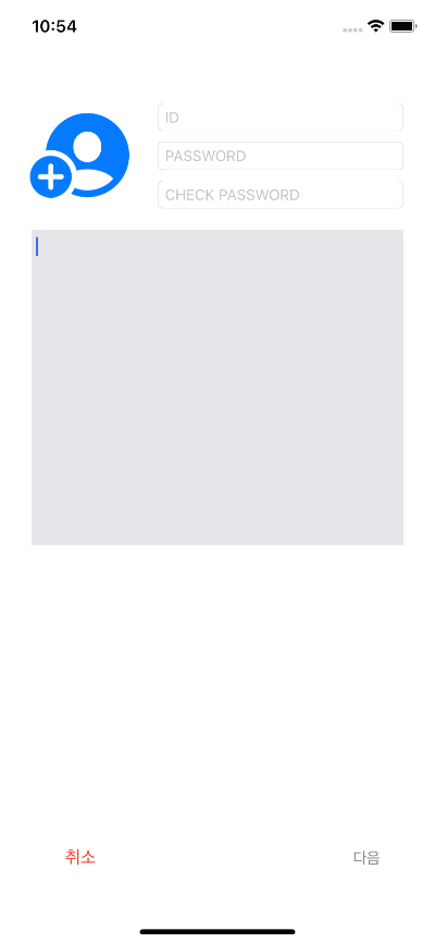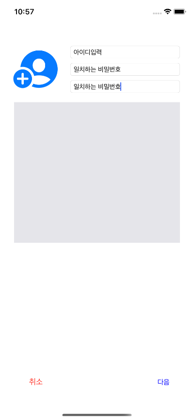 제가 만드는 회원가입 화면은 3개의 텍스트 필드가 존재합니다.